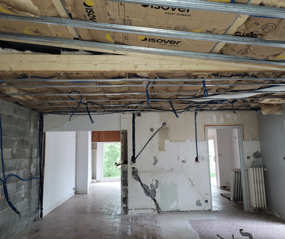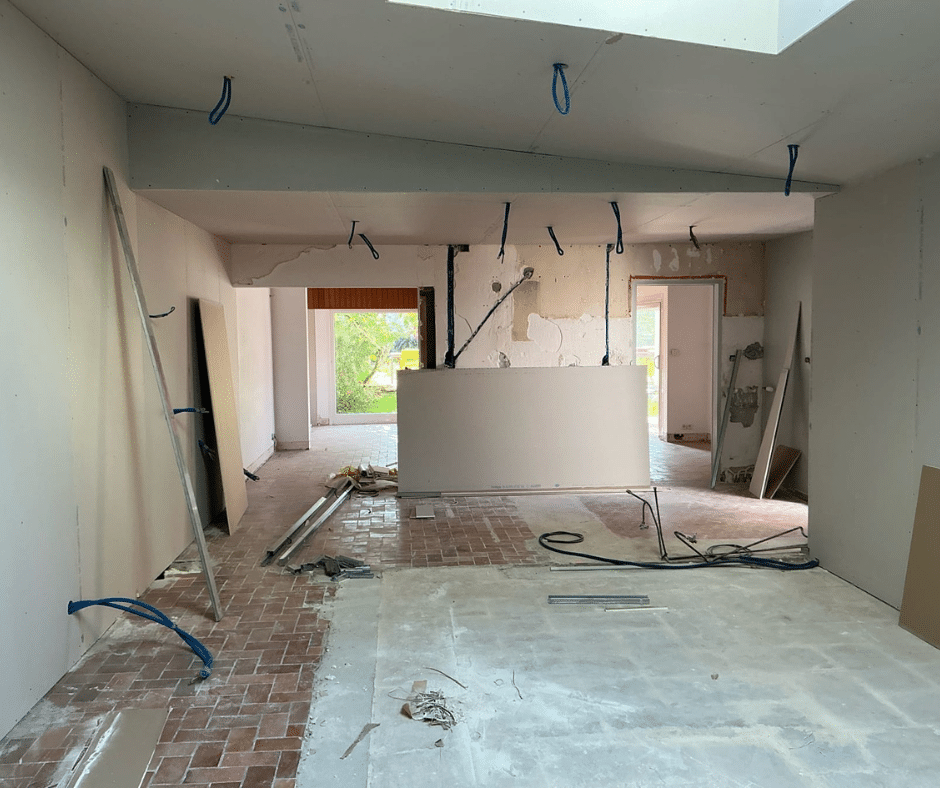 – Démolition de murs non porteurs pour agrandir la salle à manger